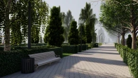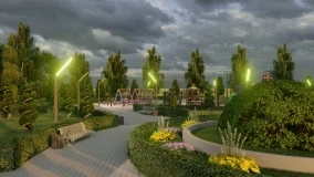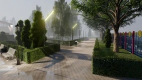 Согласно проекту, на участке будут обустроены зеленая зона, скамейки, освещение, пешеходные дорожки, а также детская игровая площадка.