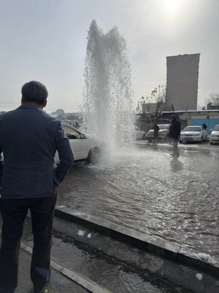 На ул. Осмонкула прорвало пожарный гидрант