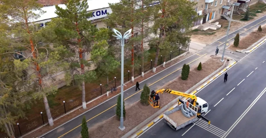 В центре Таласа устанавливают современные осветительные конструкции