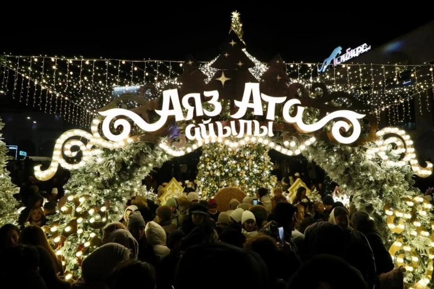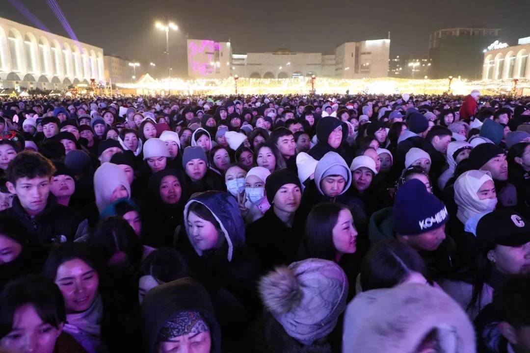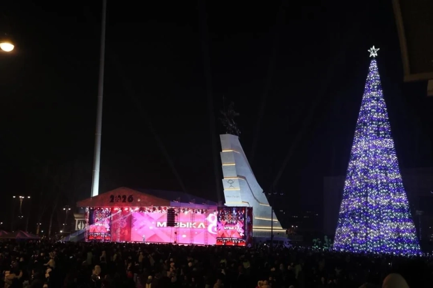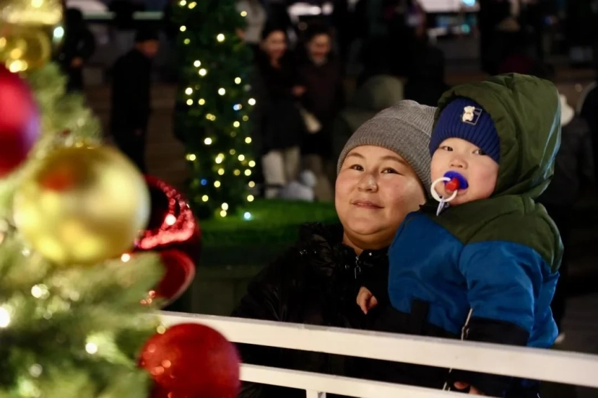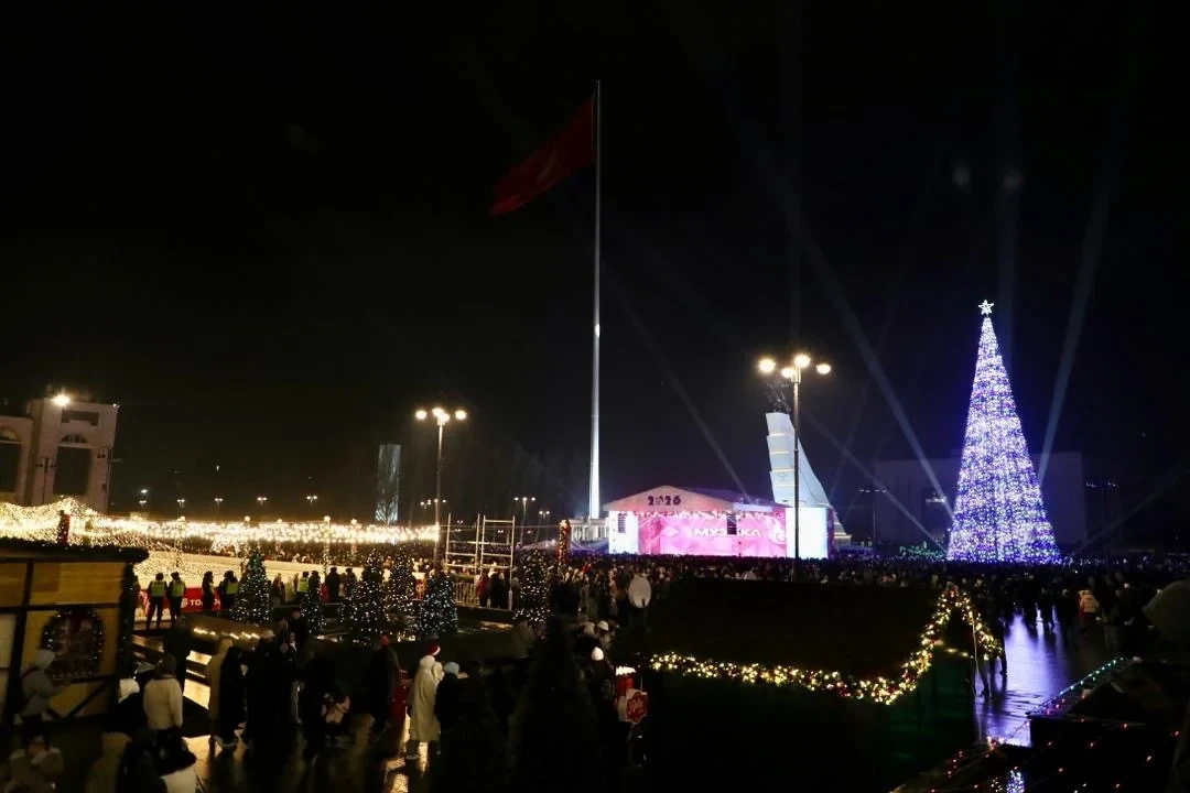 На площади Ала-Тоо в Бишкеке зажгли главную новогоднюю елку страны