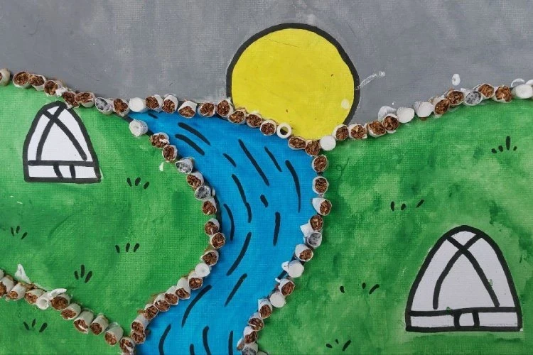 Кроме пестицидов, студенты также изготавливают пластыри от плесени из окурков. В качестве наглядной демонстрации они создали несколько картин, показывающих возможности экологии и искусства.
