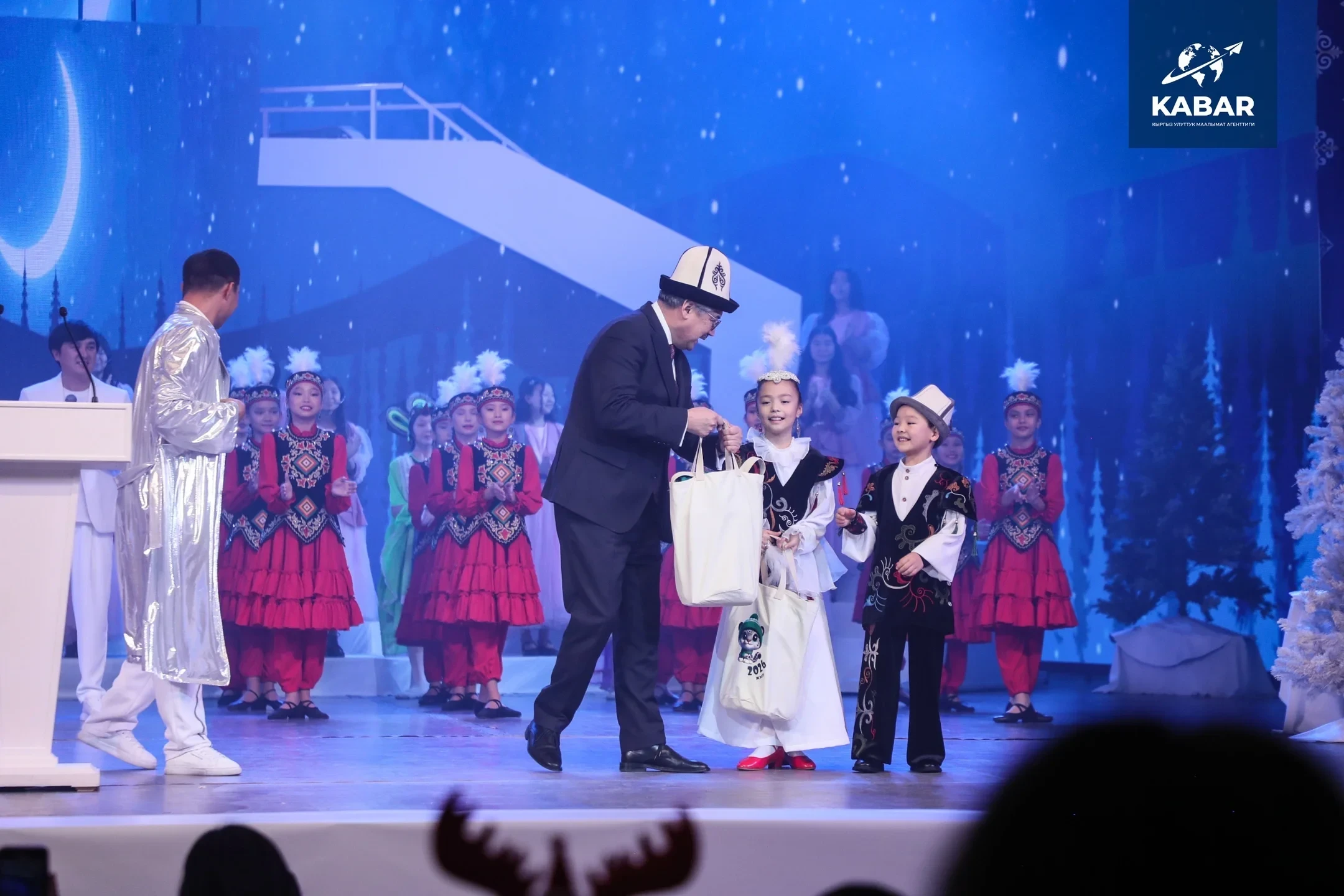В Бишкеке, 19 декабря, состоялось традиционное новогоднее мероприятие — президентская елка, организованная в Кыргызской национальной филармонии имени Токтогула Сатылганова.