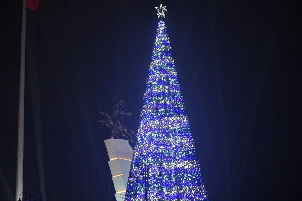 По описанию мэрии, "главная новогодняя елка Бишкека 2025 года выполнена в минималистичном стиле. Конструкция имеет традиционную конусную форму и покрыта плотным искусственным еловым материалом темно-зеленого цвета".