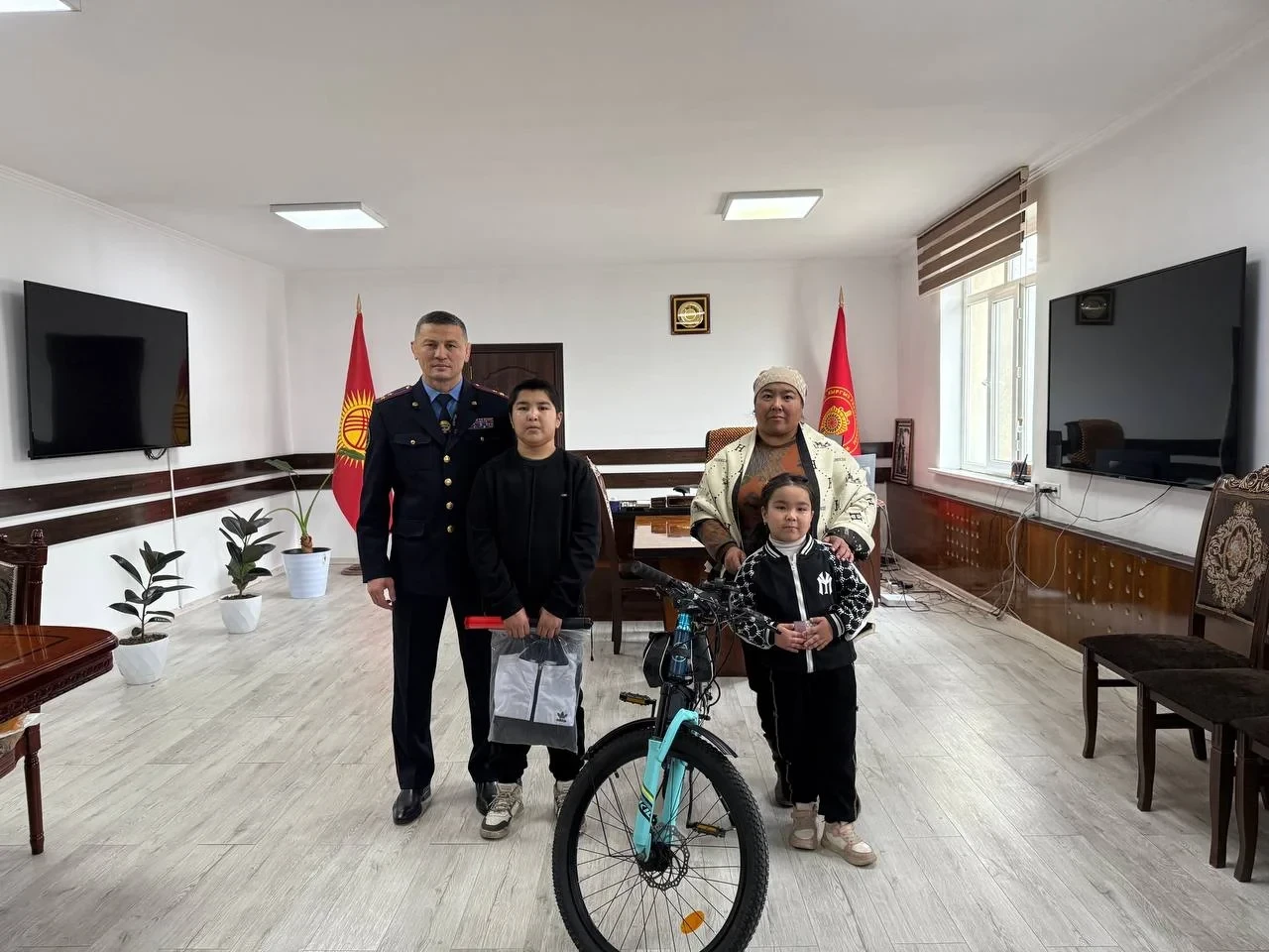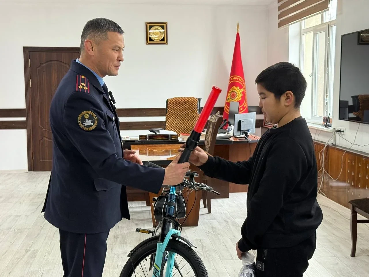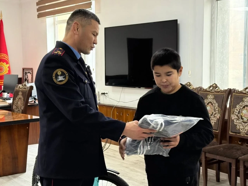 Как стало известно из источников в МВД КР, этот шаг не остался без внимания. Начальник УВД Джалал-Абадской области Марлис Асанов встретился с мальчиком, пообщался с ним и вручил новогодние подарки. Руководитель управления пожелал Ариету удачи в учебе и выразил поддержку его стремлению к службе в милиции.