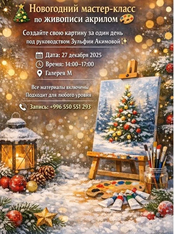 Приглашаем на уютный мастер-класс по акрилу, где под руководством Зульфии Акимовой вы создадите свою собственную картину и раскроете свой творческий потенциал. Запись по телефону 0550551293.