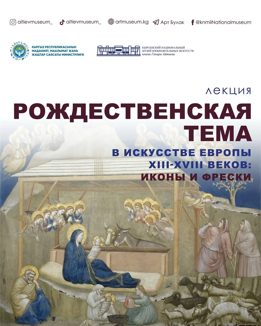 На преддверии Рождества изучим образцы религиозной живописи, оценим разнообразие художественных решений. Лектор: Айна Молдохматова.