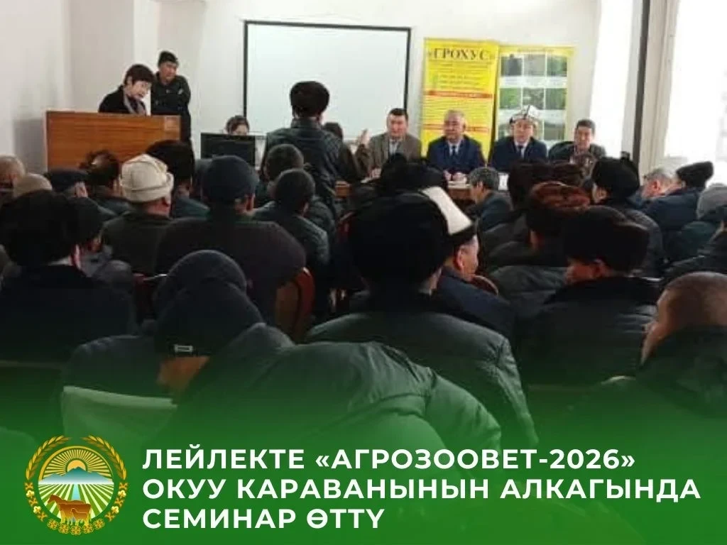 17 января в Лейлекской районной государственной администрации прошел обучающий семинар в рамках каравана «АгроЗооВет–2026». Это мероприятие было организовано Министерством водных ресурсов, сельского хозяйства и перерабатывающей промышленности Кыргызской Республики.