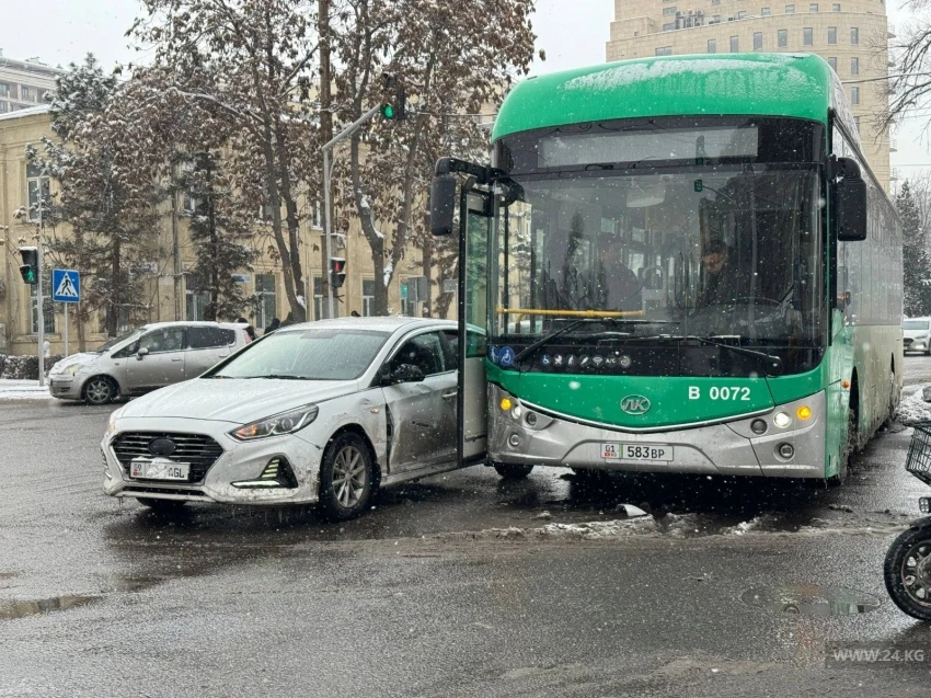 В центре Бишкека электробус столкнулся с легковушкой