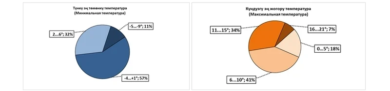В этом месяце ожидается, что средняя температура воздуха будет на 1-2 градуса выше климатической нормы и составит от 0 до 2 градусов тепла, в то время как в предгорных зонах и в Кеминской долине температура может опуститься до -1…-3 градусов мороза.