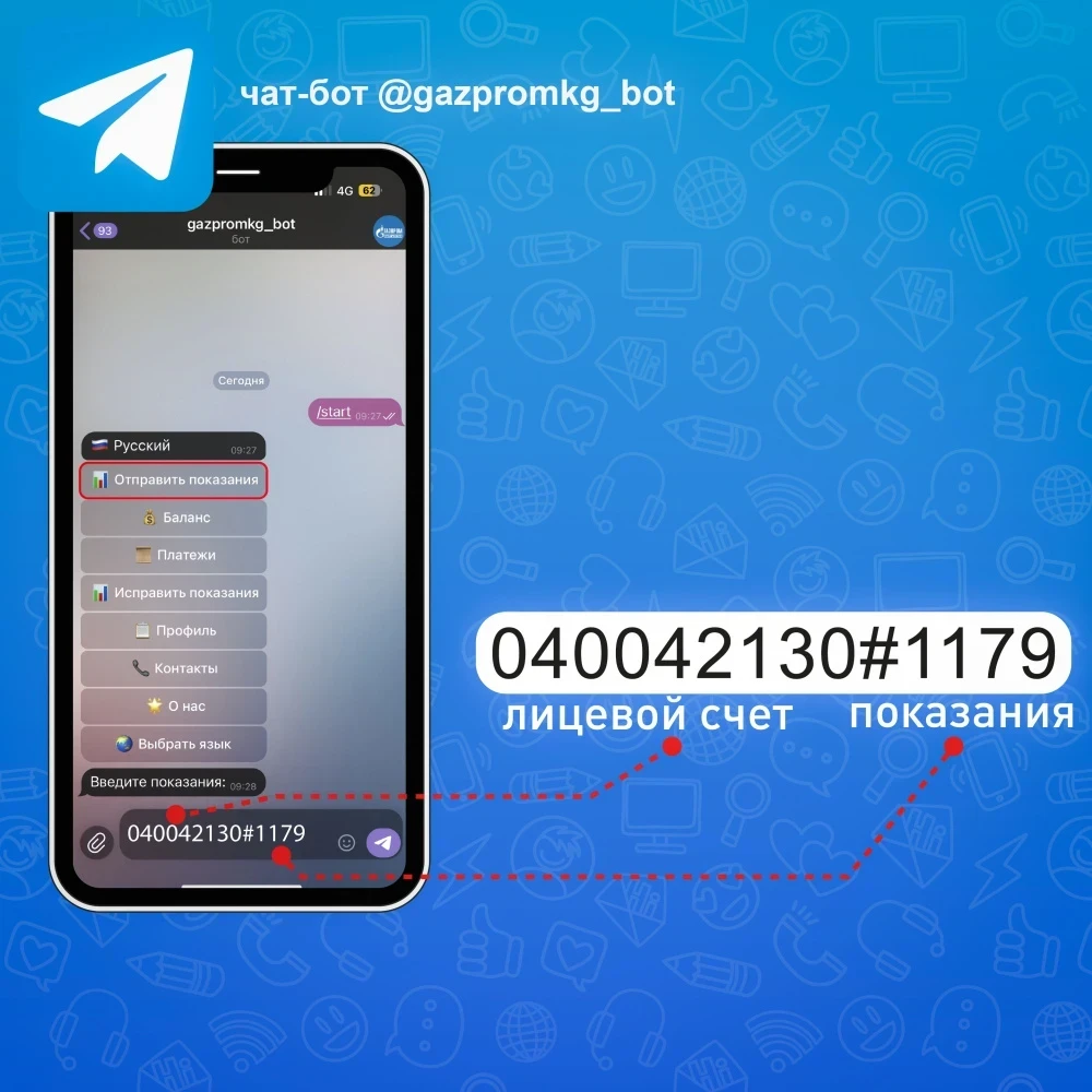 - с помощью чат-бота @gazpromkg_bot в Telegram.