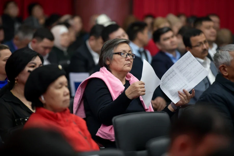 Слушания проходили в театре «Тунгуч», где присутствовали горожане, заместители мэра, депутаты Бишкекского горкенеша и руководители городских служб.