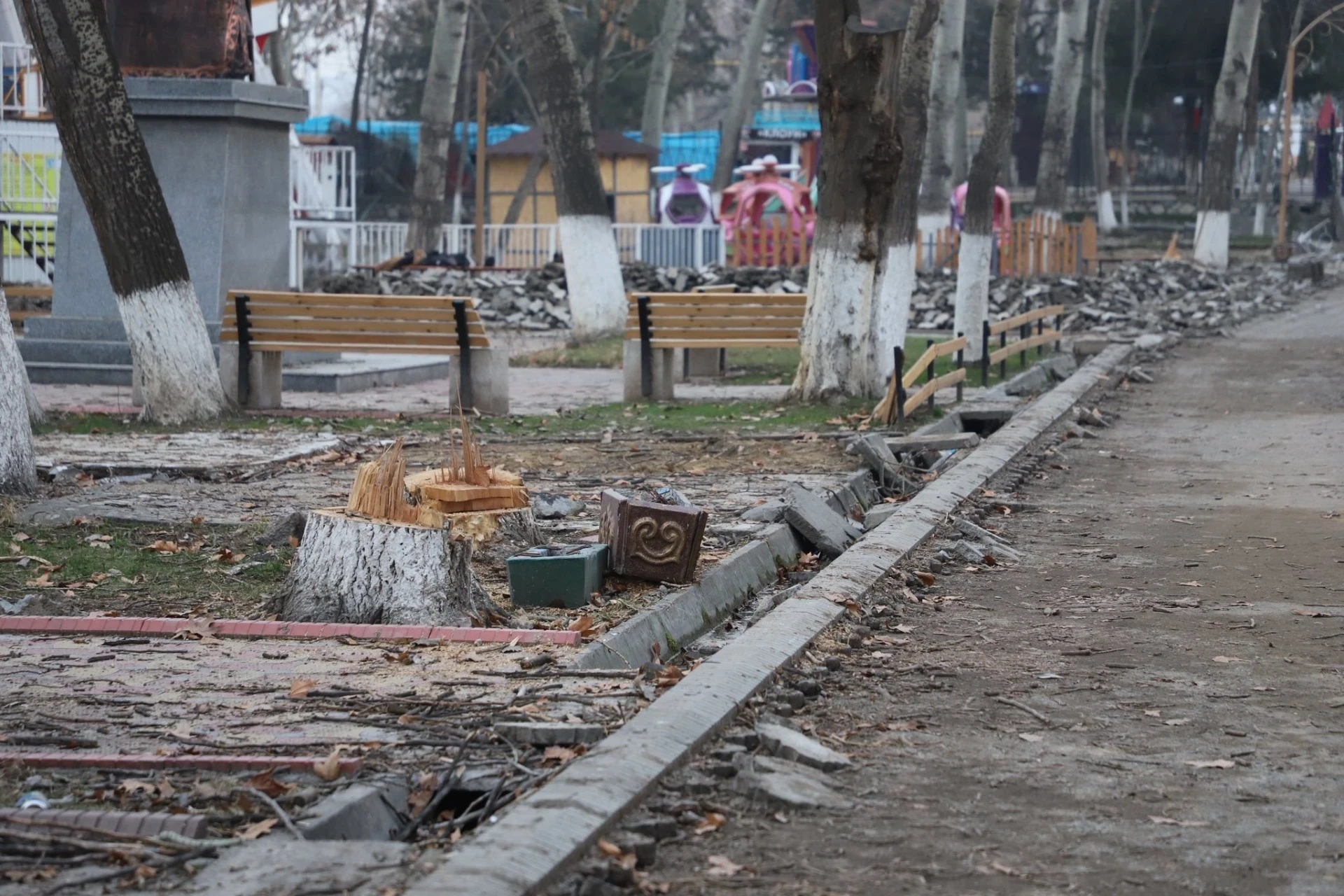 В парке Оша снесли торговые павильоны: владельцы пожаловались Жанару Акаеву