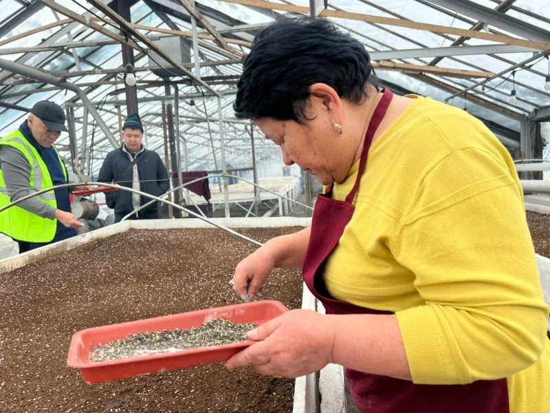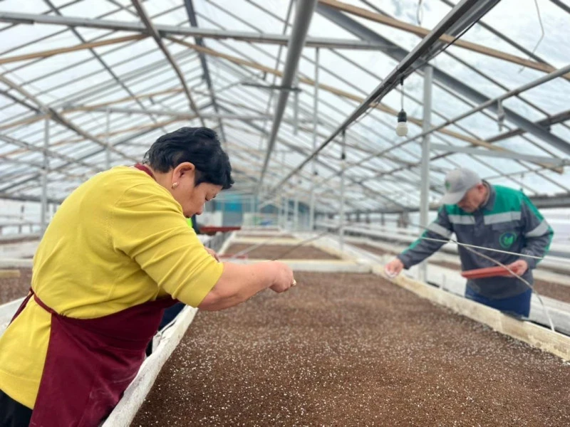 В настоящее время работники предприятия высеивают семена цветов в теплицах.