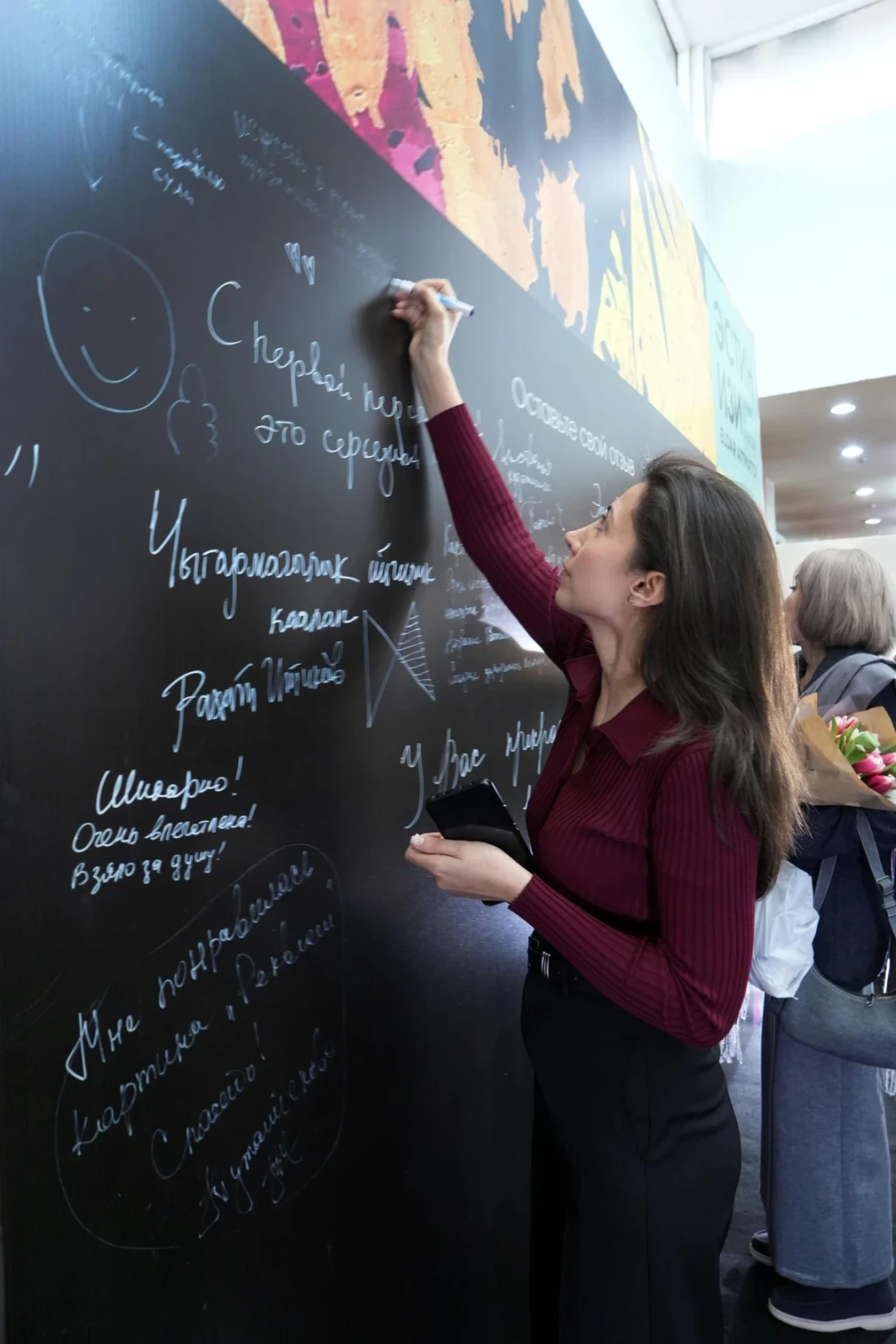 Каждый мог оставить свои впечатления на стене, превращая пространство в коллективный дневник. Слова благодарности и размышления стали частью общего настроения и концепции «Следа памяти», создавая память не только художником, но и зрителем.
