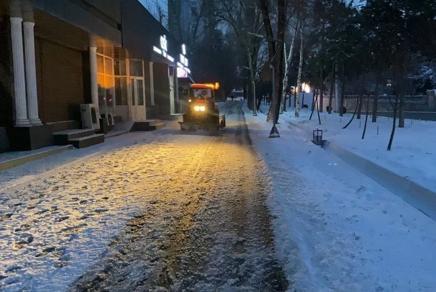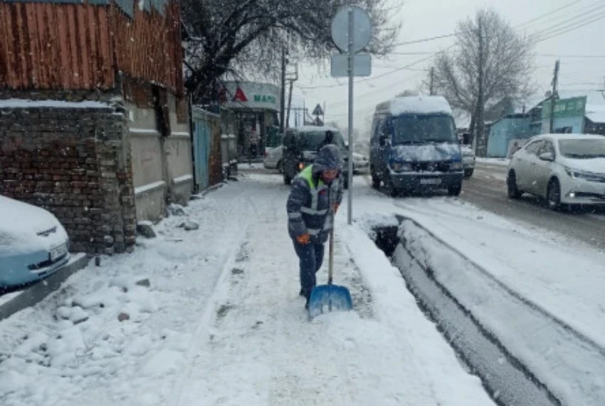 Согласно информации пресс-службы мэрии Бишкека, муниципальное предприятие «Тазалык» активно занимается уборкой снега и подсыпкой дорог технической солью. Работы начались в ночь на 10 марта 2026 года.
