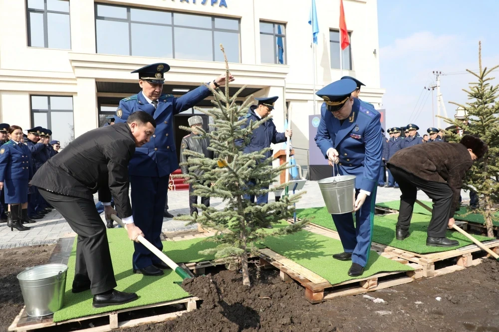 В знак торжества, генеральный прокурор посадил рядом с новым зданием елку.