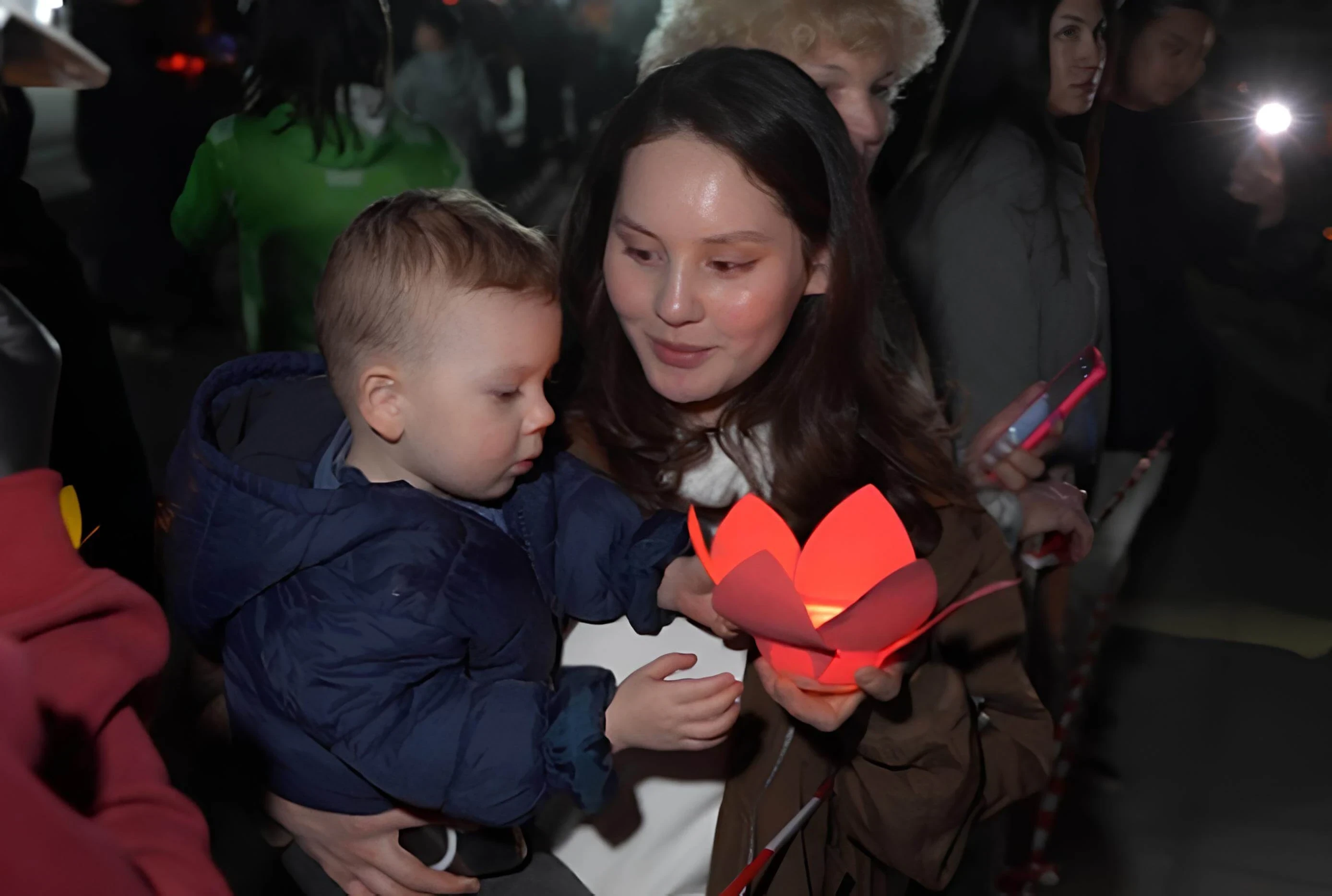 Панорамный вид с мероприятия, где были зажжены тысячи плавающих фонариков