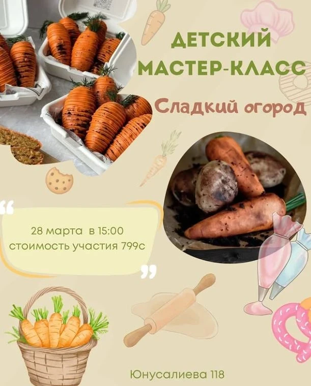 Дети смогут не только учиться, но и получать удовольствие от процесса, готовя вкусные пирожные «Сладкий огород». Регистрация по телефону 0558193333.