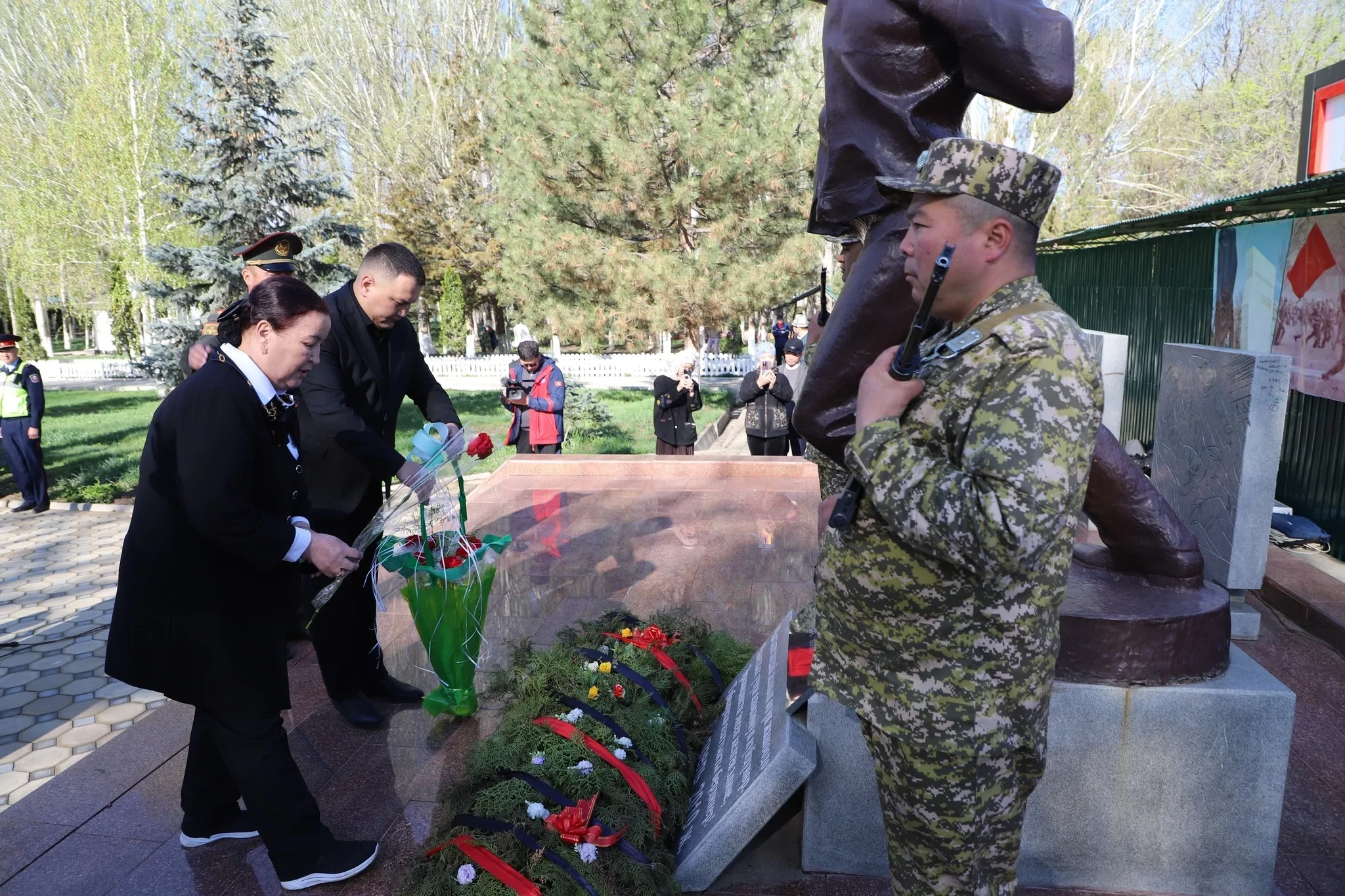 Во время церемонии к памятнику героям апреля были возложены венки, прошла молитва, а также минутой молчания почтили память ушедших, после чего был произведен воинский залп в их честь.