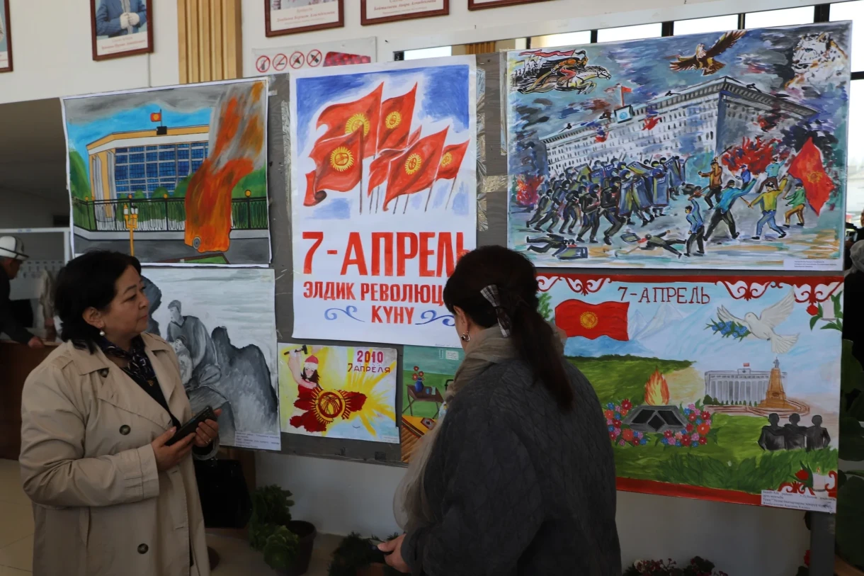Кроме того, в Таласском областном драматическом театре состоялся театрализованный пролог, который отразил события Апрельской революции, а также открылась выставка «7 апреля глазами школьников» с рисунками учащихся.