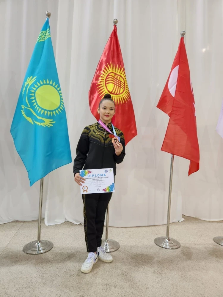Элима Абдималикова заняла третье место в упражнении с обручем.