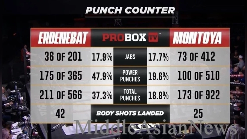 Цэндбаатар Эрдэнэбат стремился стать первым боксёром, сумевшим нокаутировать Абрахама Монтойю в пятницу ночью. Хотя Монтойя проявил удивительную стойкость, Эрдэнэбат все же поднял руку в знак победы.