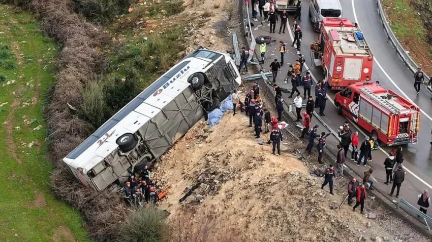 Инцидент случился примерно в 10:20. Автобус, направлявшийся в Анталью, потерял управление на одной из развязок. В момент происшествия в автобусе находились 34 пассажира.По предварительным данным местных властей, дорога была скользкой из-за дождя, а густой туман усугубил ситуацию. Основной версией происшествия считается превышение скорости.