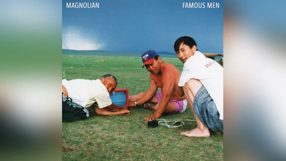 — Да, я был уверен в одном: не хотел, чтобы на обложке был мой портрет. Однажды, просматривая старые фотографии в металлической коробке дома, я наткнулся на это изображение. Показал его жене, и она сразу сказала: «Это потрясающе». Найти эту фотографию было случайностью. Это очень интересное изображение, не так ли? Там изображена сельская местность, но молодого человека на лошади нет. Фото сделано во время Наадама. Если приглядеться, можно увидеть троих мужчин, настраивающих антенну, чтобы посмотреть борьбу бөхийн барилдаан.