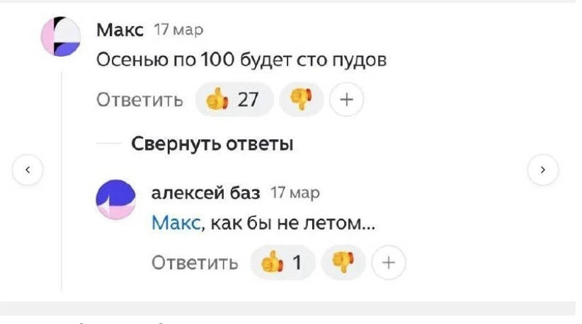 Многие пользователи в комментариях к материалам «НИ» выразили скептицизм по поводу стабилизации цен на бензин, прогнозируя лишь их рост. Читатели также заметили, что стоимость литра бензина в России всегда стремится к одному доллару по текущему курсу.